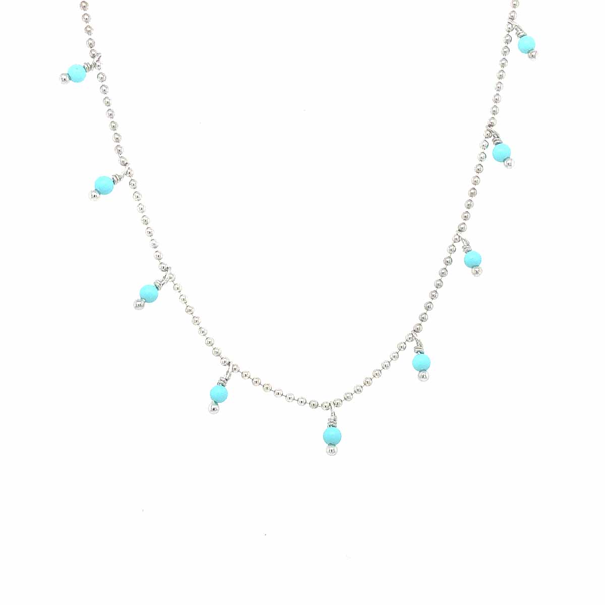 Srebrna verižica, ki je po dolžini prilagodljiva od 36 do 42 cm. Na verižici so manjši okrogli turkizi, v kombinaciji z okroglimi srebrnimi bunkicami. Verižica se nosi ob vratu in se lahko kombinira z daljšimi verižicami. Lepo se tudi kombinira z zapestnico iz iste kolekcije.