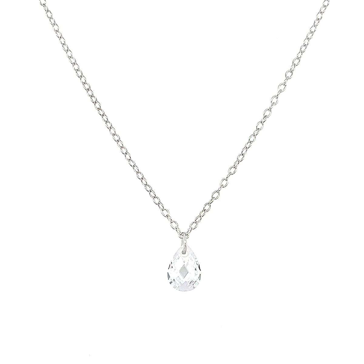 Srebrna verižica z brezbarvnim cirkonom, dolžine od 38 do 41 cm.