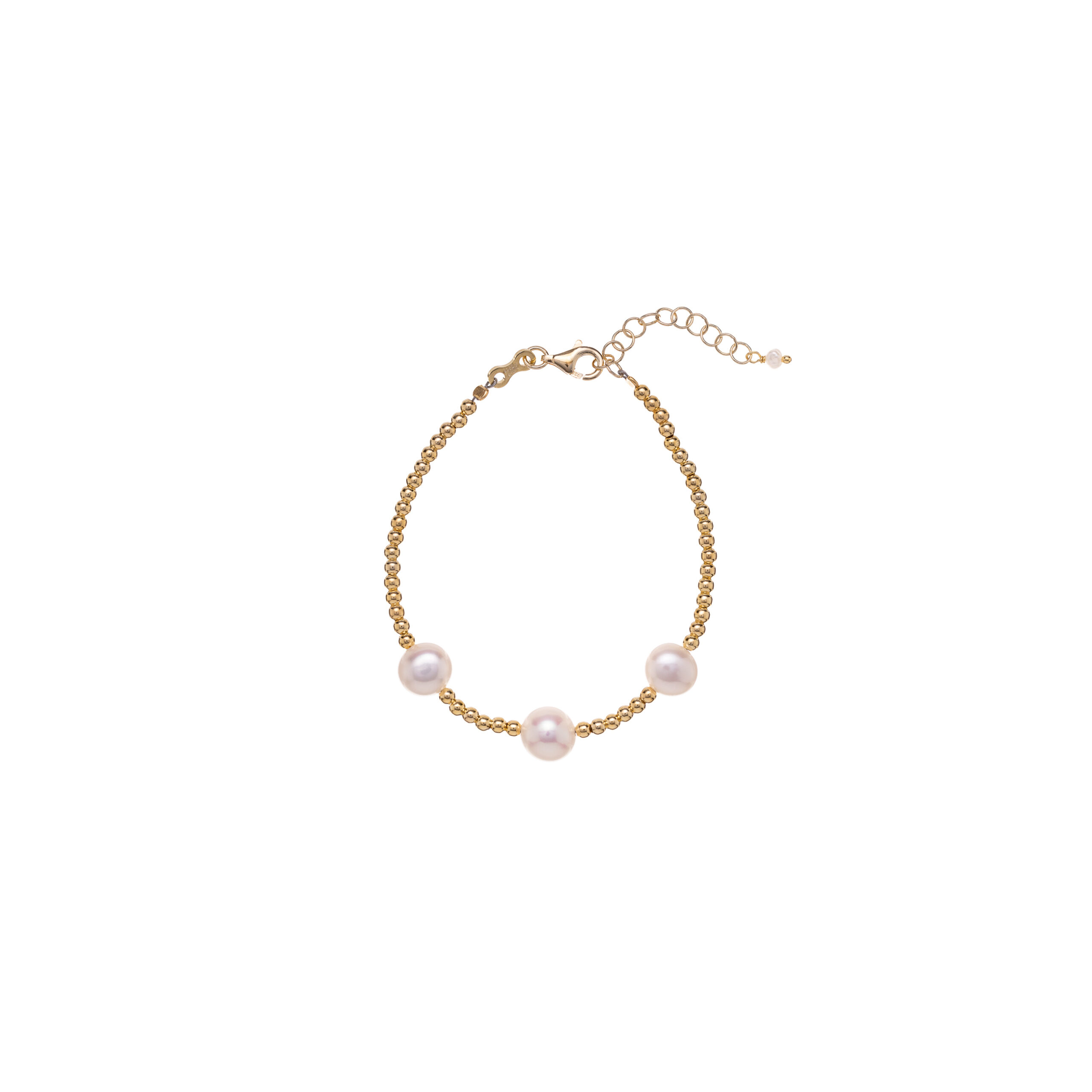Zapestnica izdelana iz 925 srebra z rumeno pozlato in biseri. Na voljo tudi z rožnato pozlato ali v srebru.