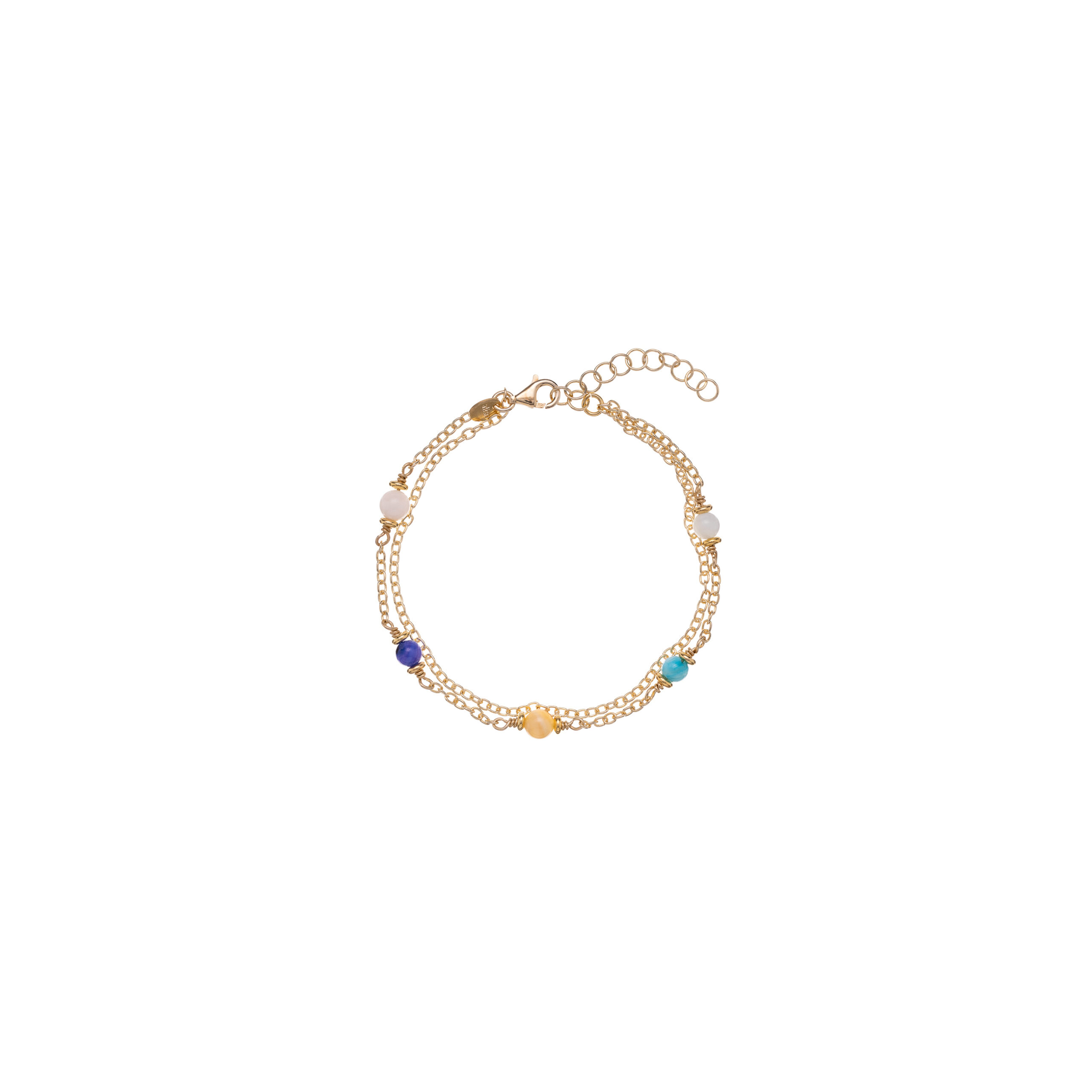 Srebrna zapestnica pozlačena z rumenim zlatom, ki je po dolžini prilagodljiva od 15,5 do 18,5 cm. Na zapestnici so večbarvni biseri, Zapestnica se lepo kombinira z verižico iz iste kolekcije.