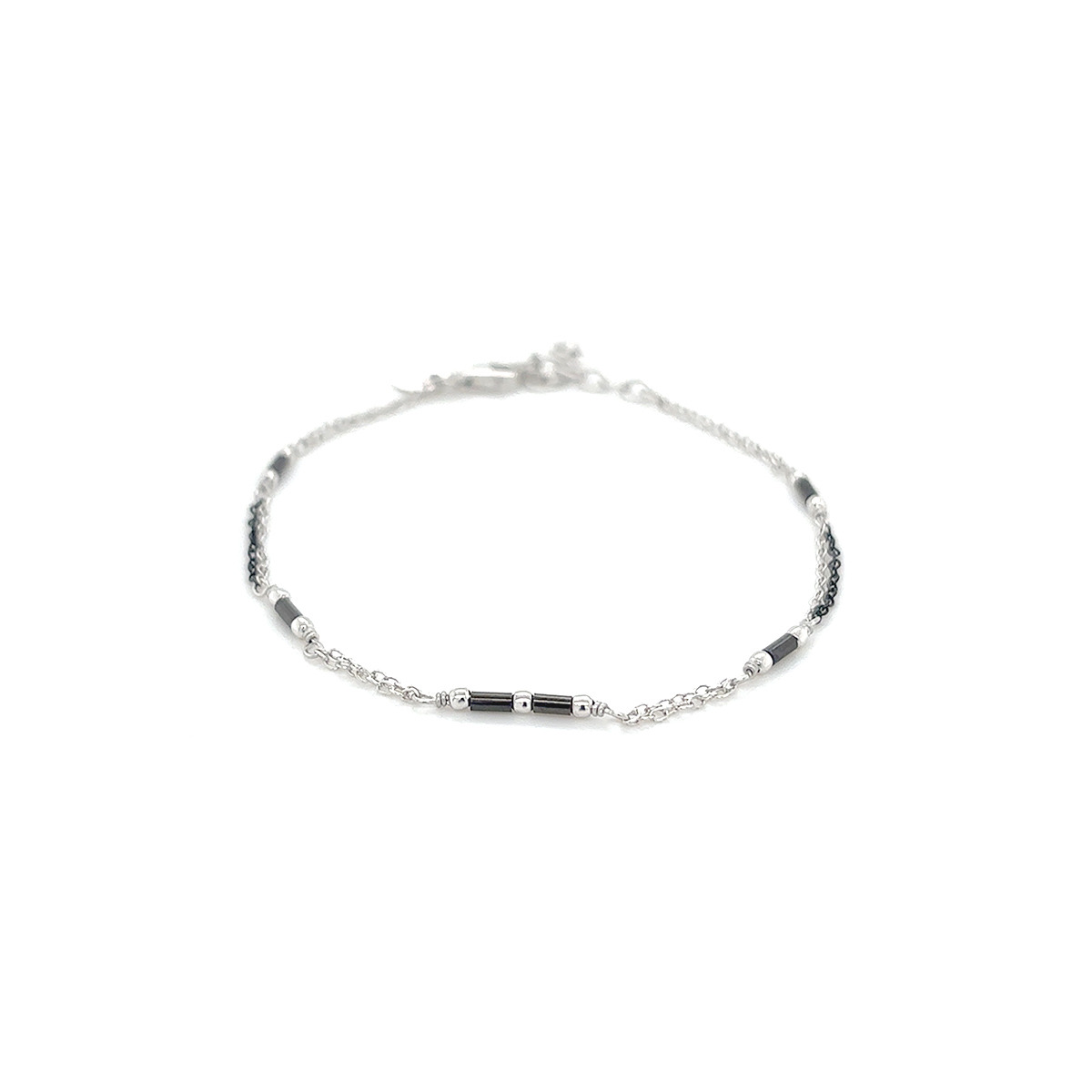 Srebrna zapestnica s črnimi detajli, ki je po dolžini prilagodljiva od 15 do 18 cm. Zapestnica je zelo nežna in se lepo kombinira z verižico iz iste kolekcije.