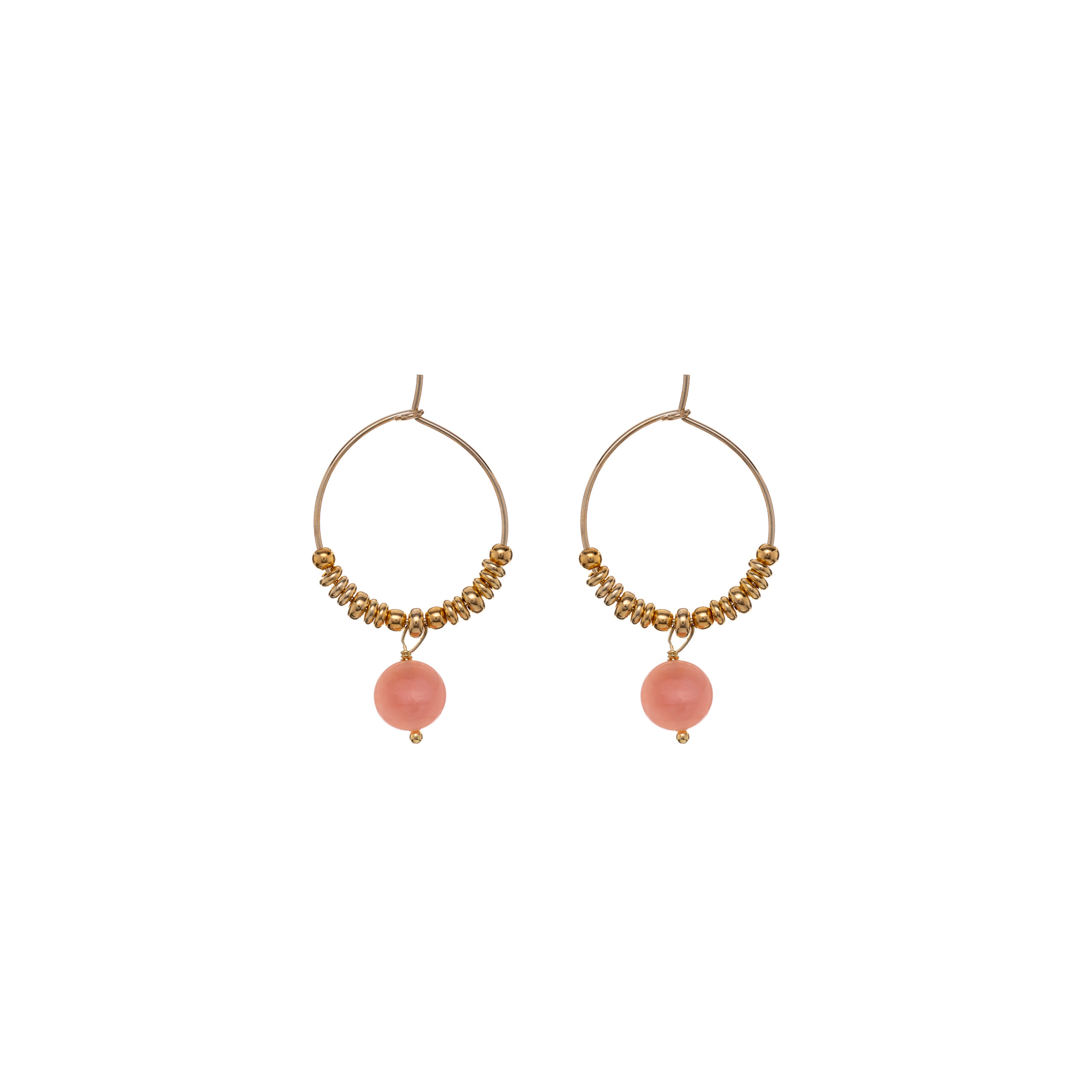 Uhani izdelani iz srebra z rožnato pozlato in roza opalom. Premer uhanov je 2 cm. Na voljo tudi z rožnato pozlato ali v srebru.